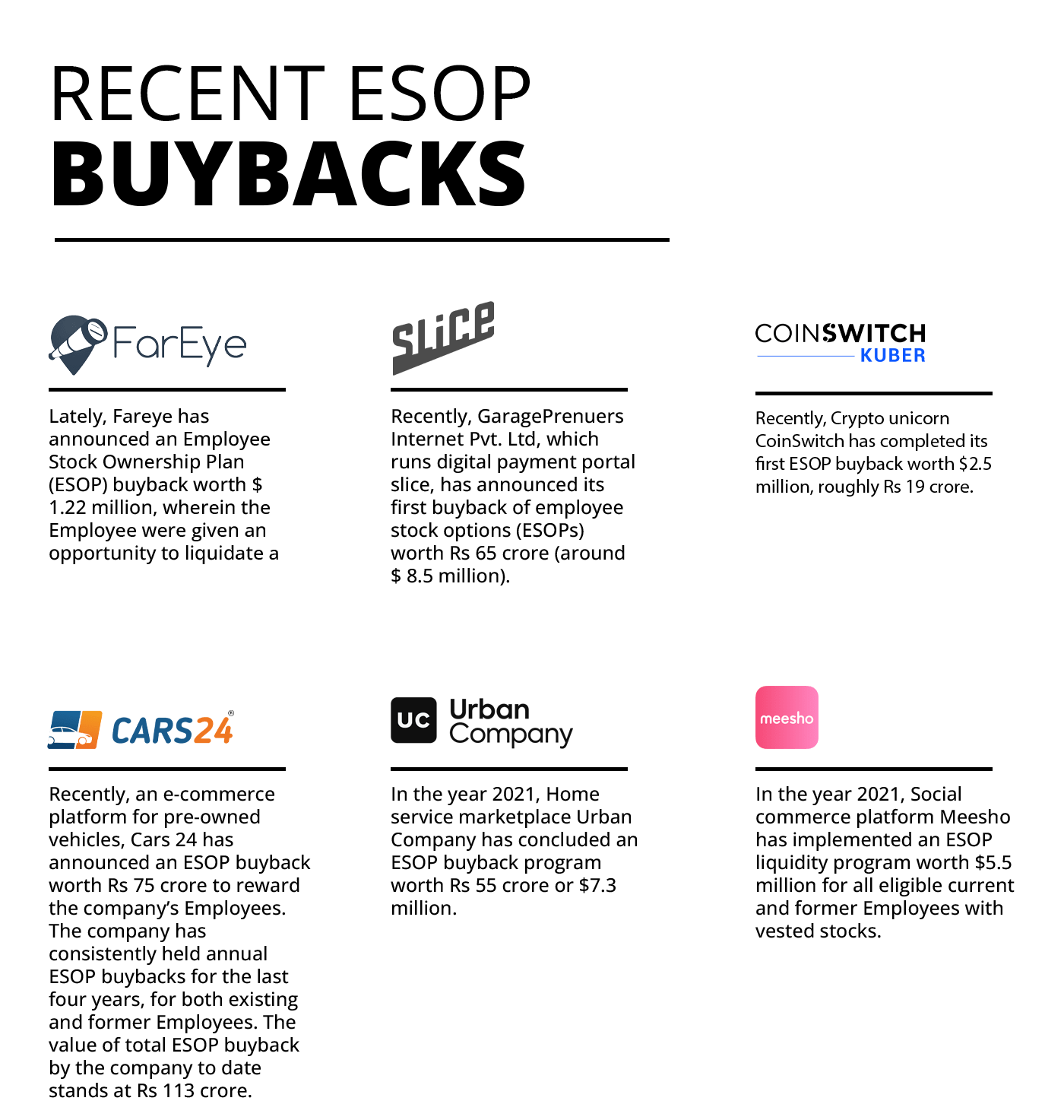 Besides listed Companies, it has been observed that many Unicorn Start-ups, specifically the unlisted Companies, have also given the opportunity to their Employees for the encashment of Employee Stock Options by implementing ESOP Buyback programmes.